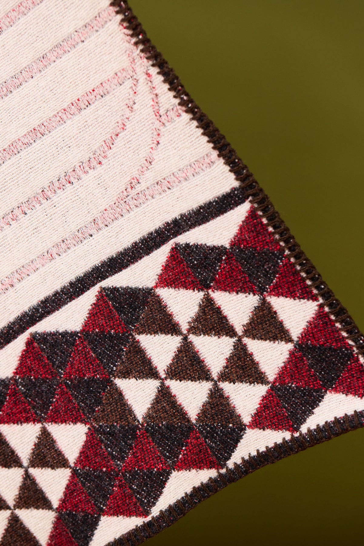 This blanket is woven with 100% New Zealand Lambswool and four different weave structures have been used to enhance the design. Mataraunui has been milled and pressed to achieve a soft and smooth feel and features a blanket stitch edge.